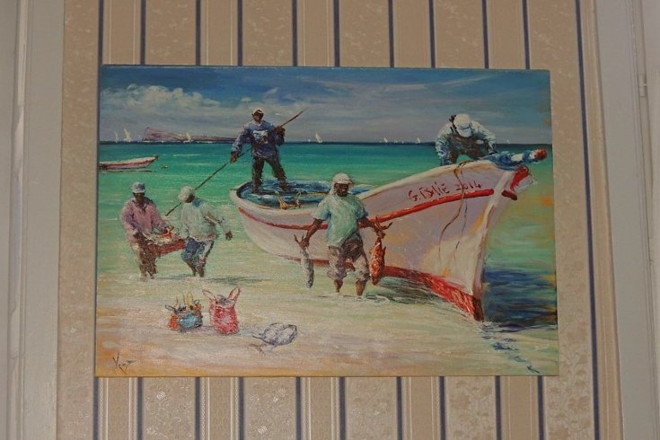It is known for acrylic paintings that depict Mauritian life, sugarcane fields, and portraits of locals.